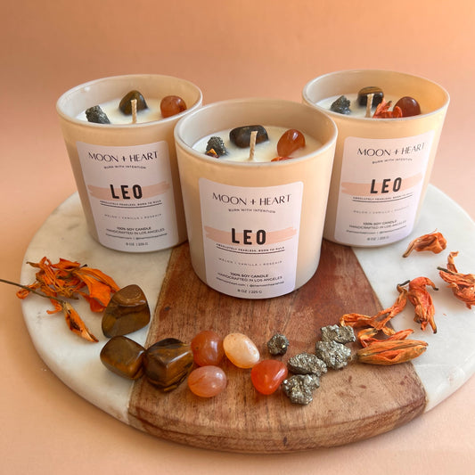 LEO zodiac Candle | Zodiac candle | Intention Candle with Crystals | Manifestation CandleRegular price From $23.50 USDRegular priceUnit price / per$26.00 USDSale price From $23.50 USDSale