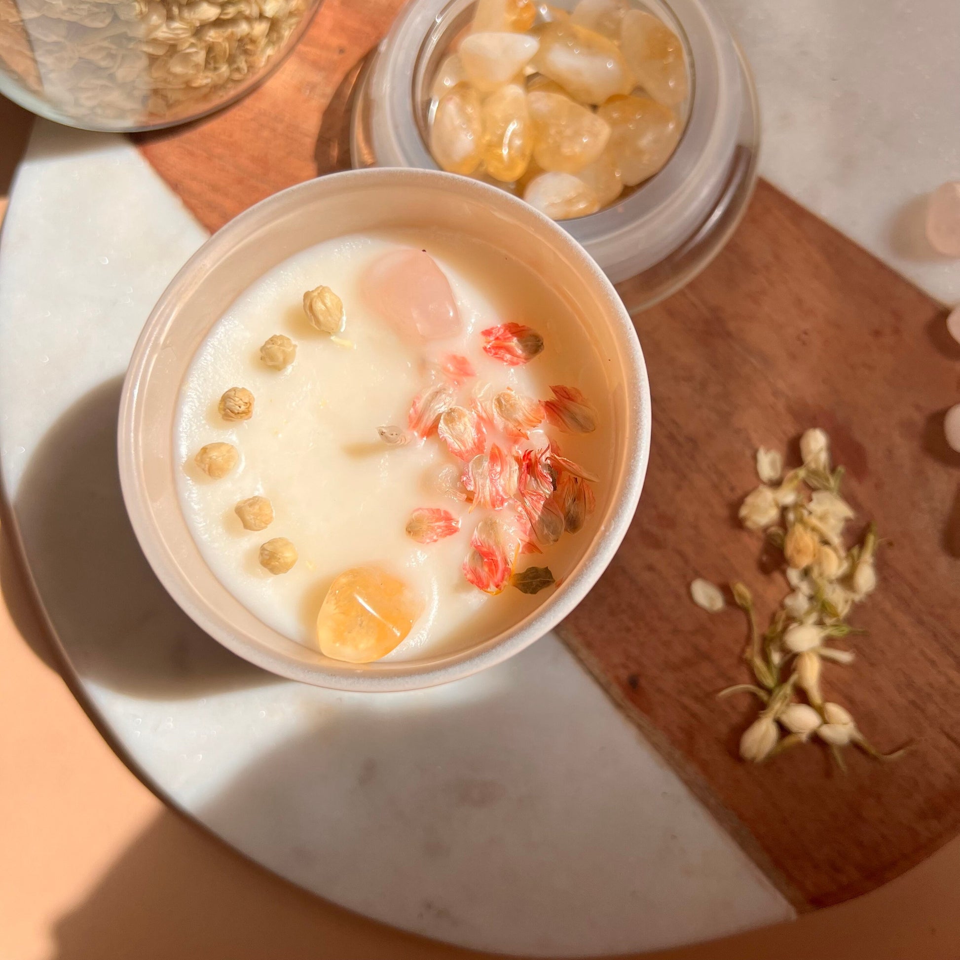 INFINITY LOVE Bridal Intention Soy Wax Candle | Rose Quartz + Citrine | Scent: Lavender Brown Butter Cake