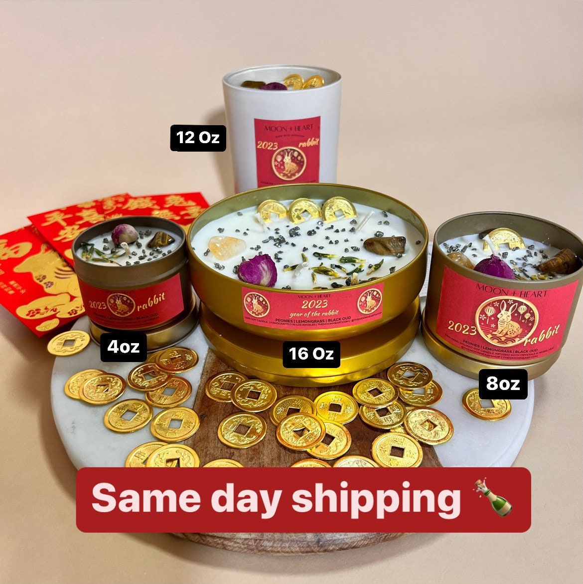 Our Lunar New Year of the DRAGON Intention Organic Soy Wax Candle is made to bring all your well wishes to fruition for the year of the Dragon. Manifest an amazing year of the Dragon. The Chinese horoscope predicts that the Year of the Dragon in 2024 will bring luck, wealth, and power, with strong leadership skills and attractive personalities, making it a great time for new starts and long-term success for all 12 Chinese zodiac signs