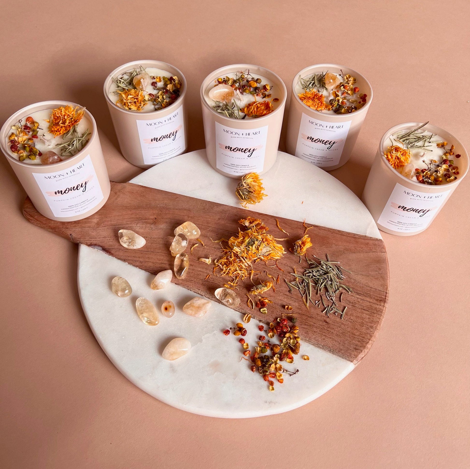 MONEY Candle | Soy Wax Intention Candle | Homemade candles | Manifestation Candle with Crystals.