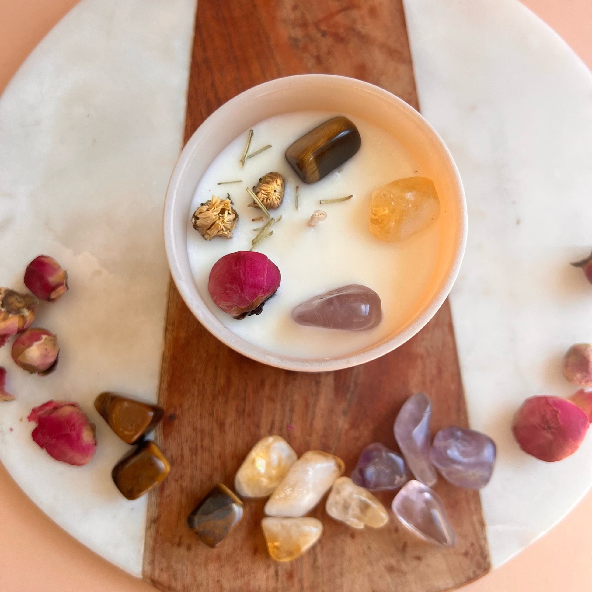VIRGO zodiac sign Intention Candle w/ Crystal | Dried Flower Candles | Homemade candles | Manifestation Candle