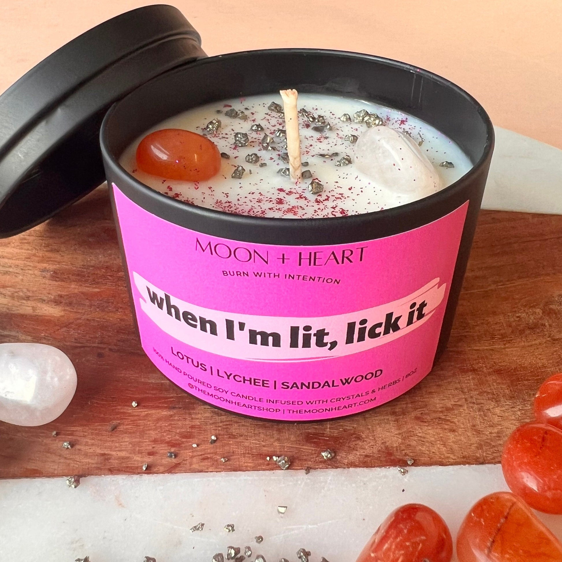 When I'm lit, Lick it Candle | Crystal Infused Candle | Intention Candle | Manifestation Candle | Homemade candles